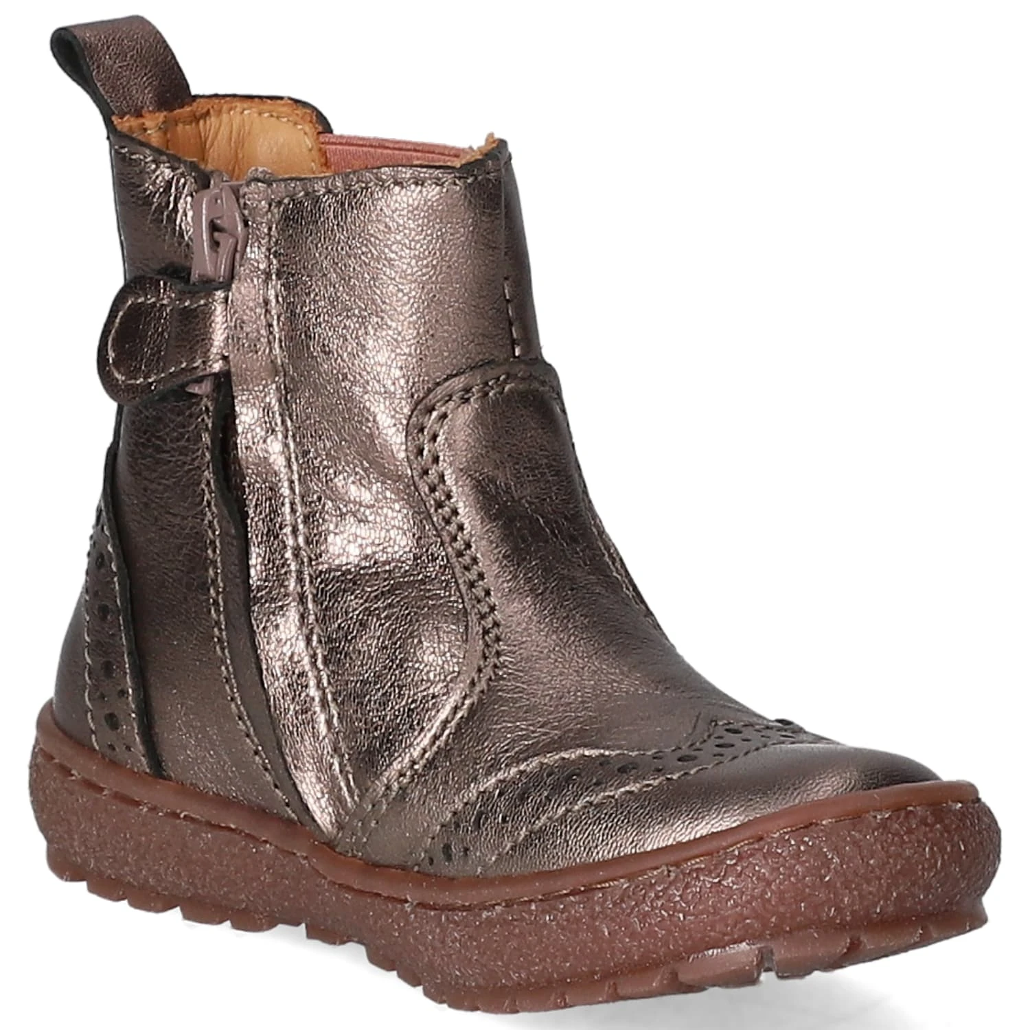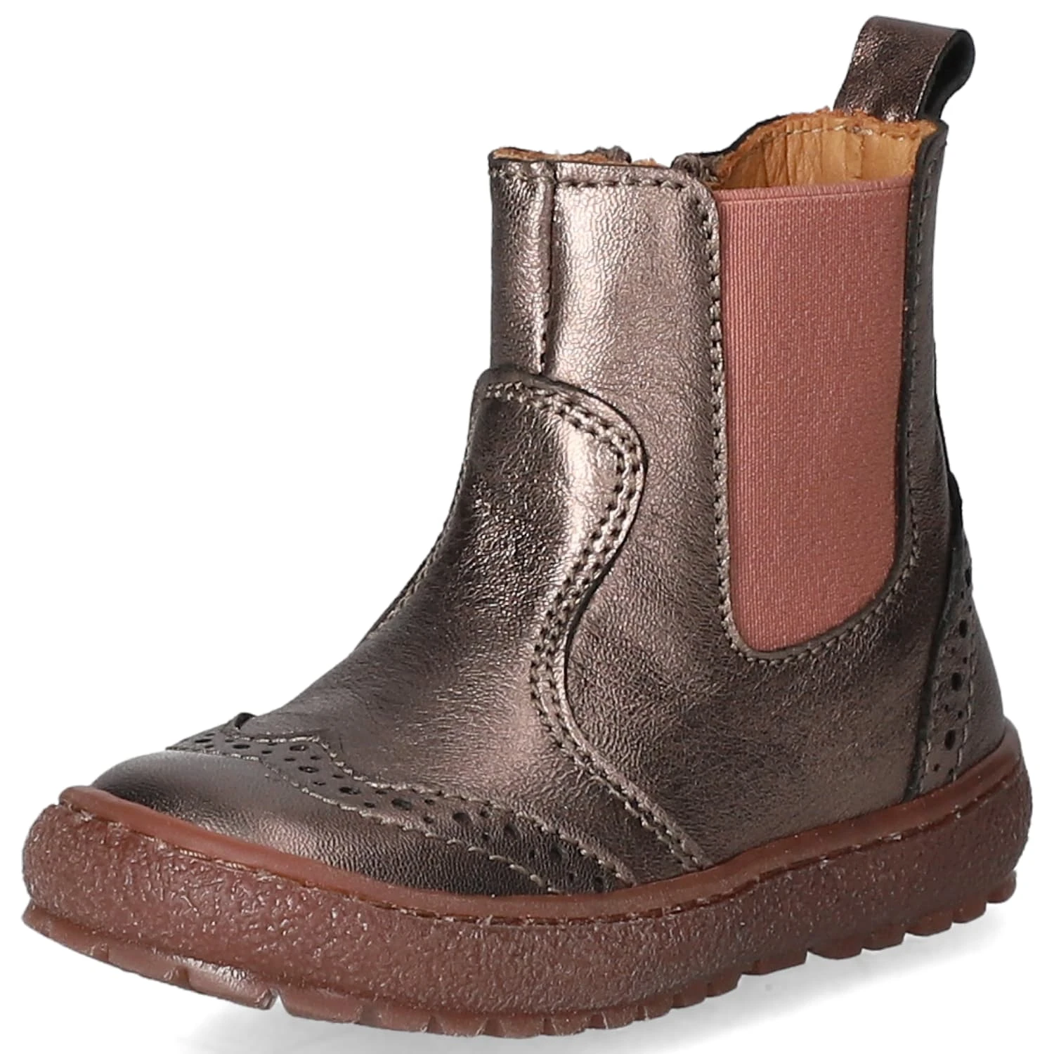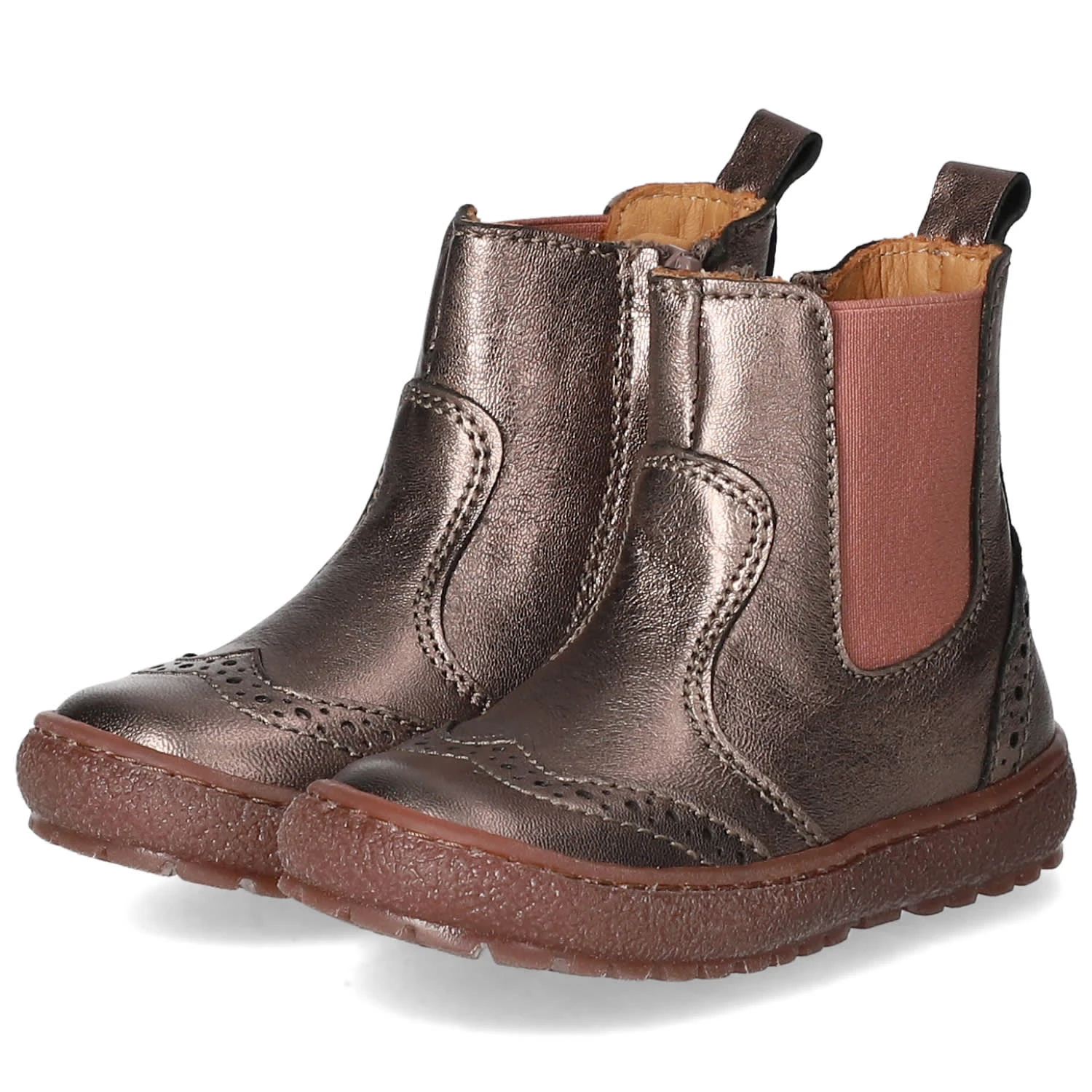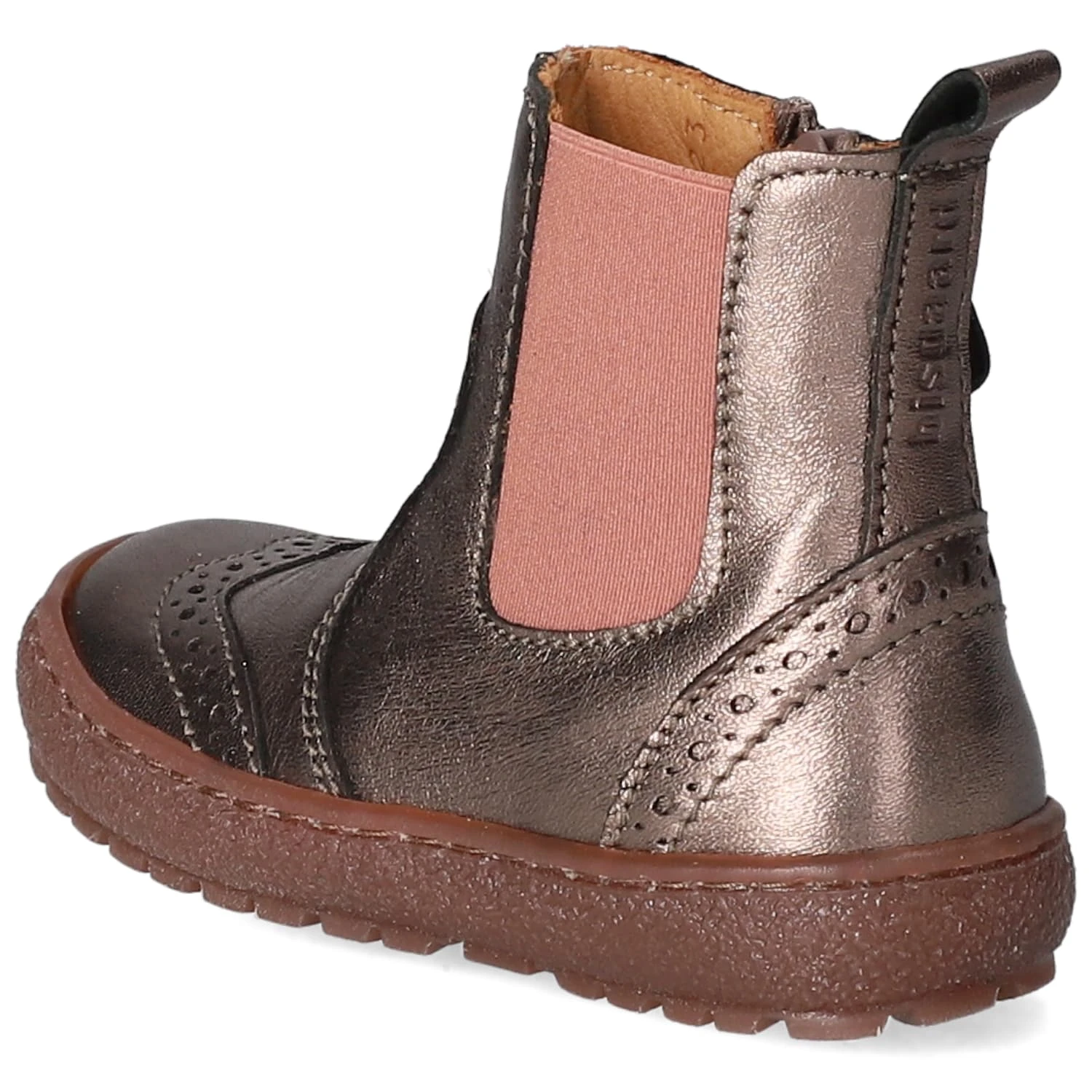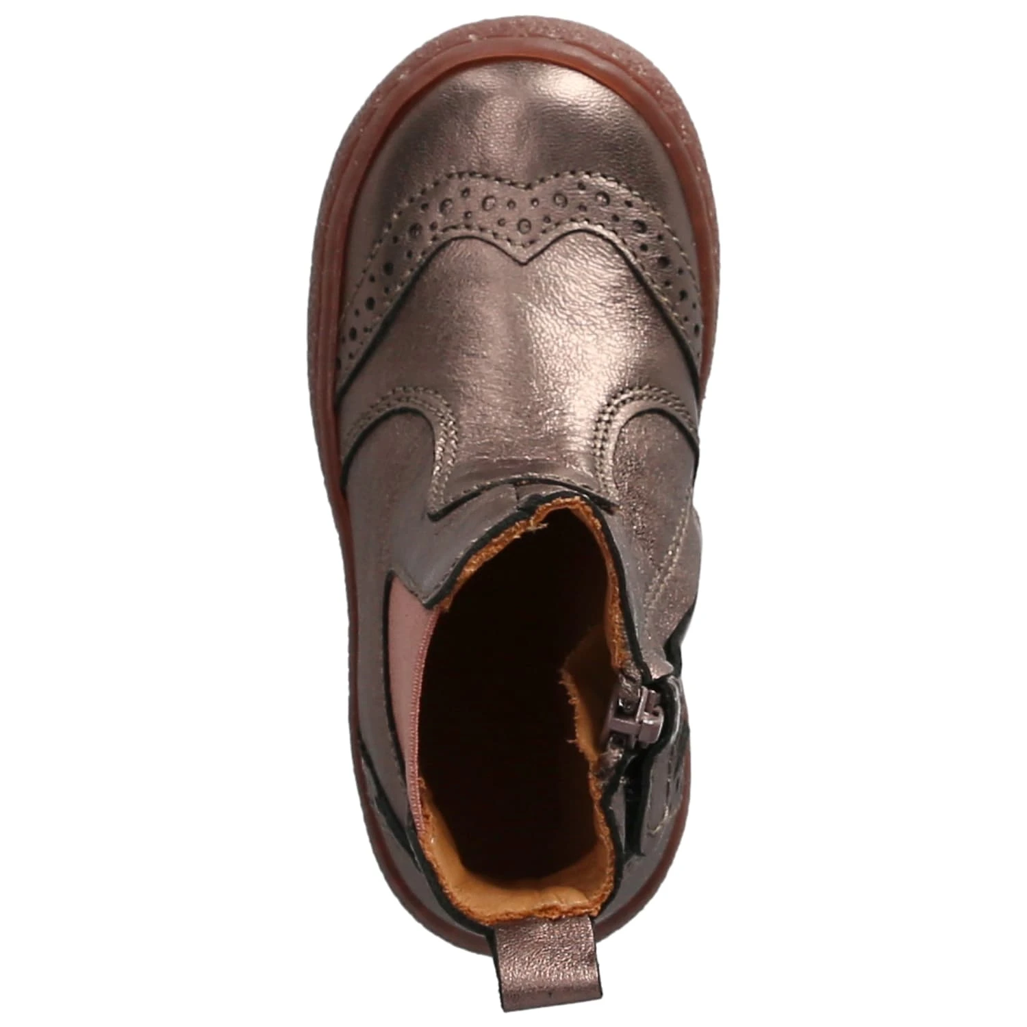 Bisgaard Mädchen Stiefeletten MERI Bronze Leder – Reißverschluss mit zusätzlichem kleinen Klettverschluss – elastischer Einsatz am Schaft – Ziernähte – Budapester Lochmuster – verstärkter Zehen- und Fersenbereich – Wechselfußbett – flexible, rutschhemmende Laufsohle