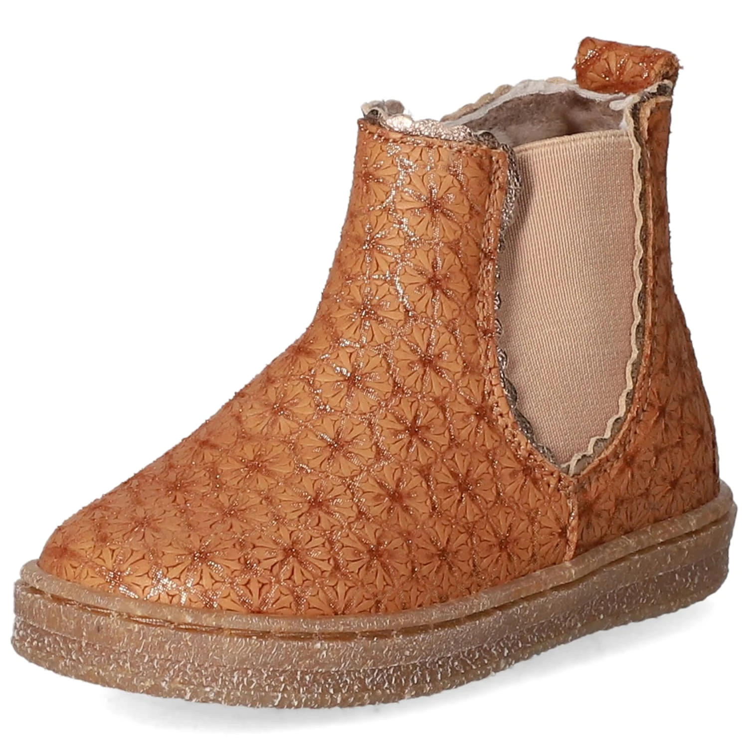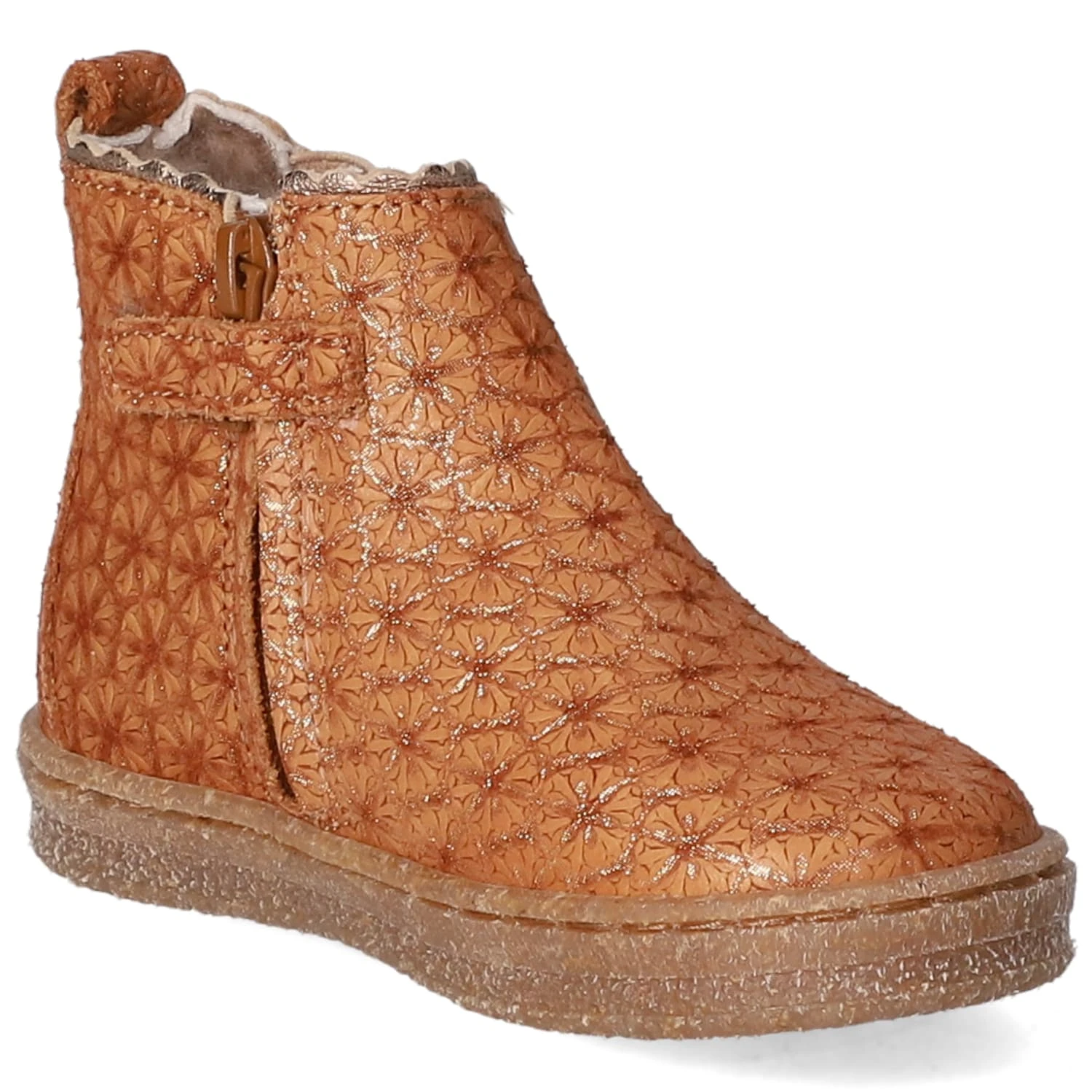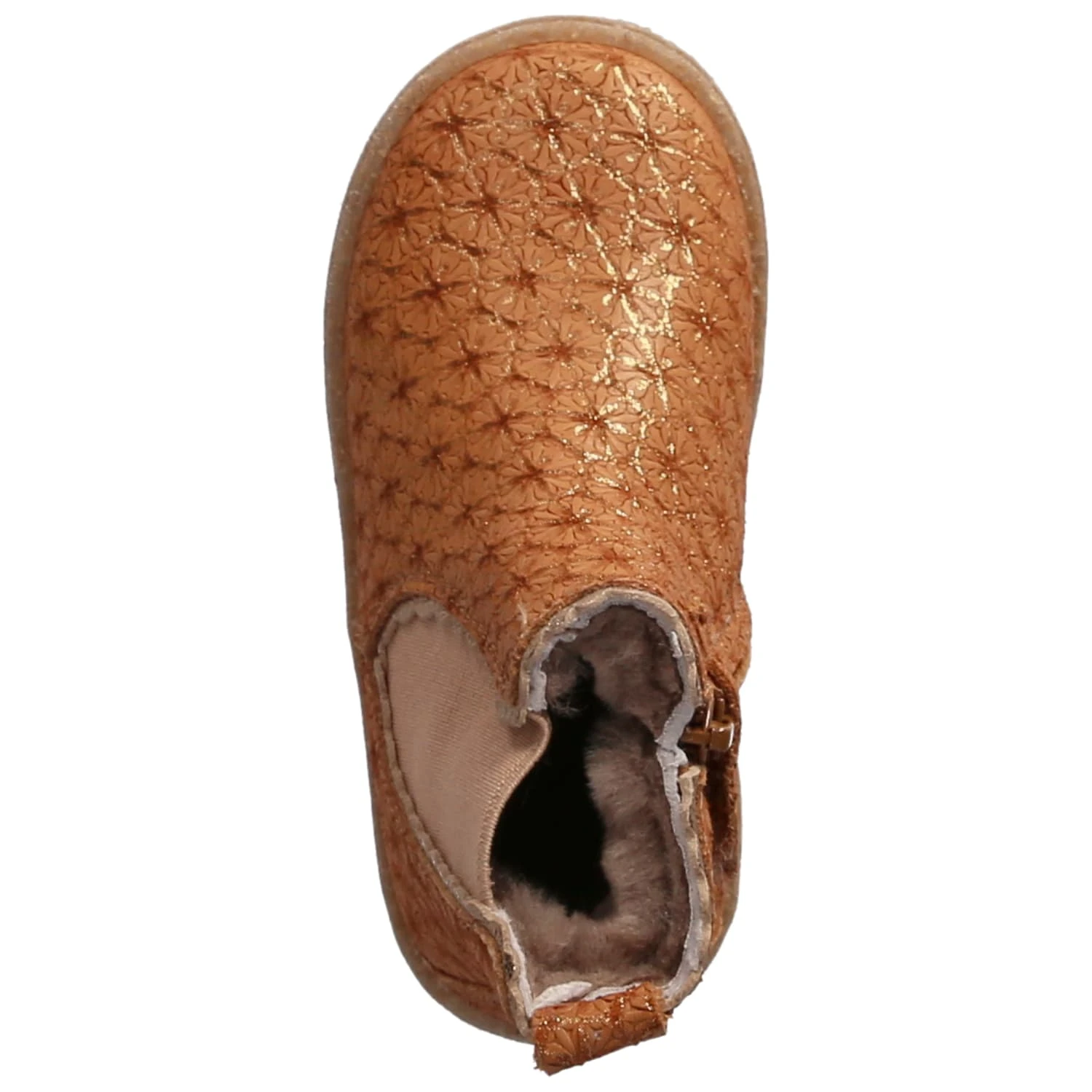 Bisgaard Mädchen Stiefeletten SIGGI Orange Leder – Reißverschluss mit zusätzlichem kleinen Klettverschluss – elastischer Einsatz am Schaft – allover Blumenprint mit goldig schimmernden Details – verstärkter Zehen- und Fersebereich – Wechselfußbett – flexible, rutschhemmende Laufsohle – Warmfutter: 100% Lammfell