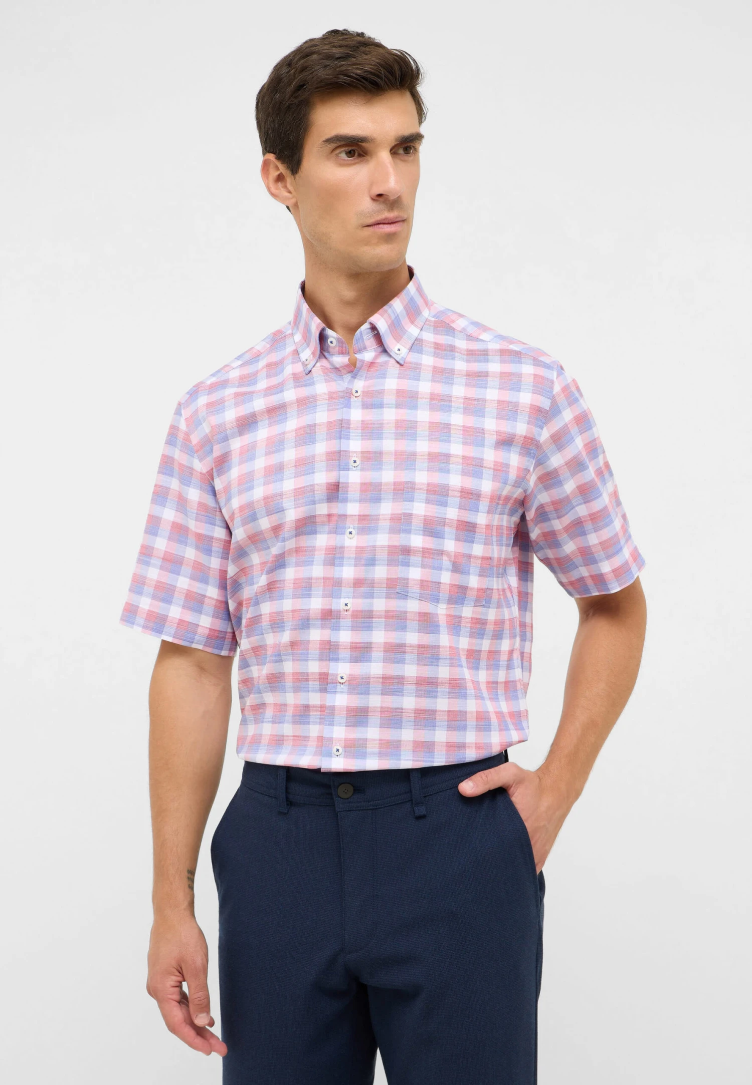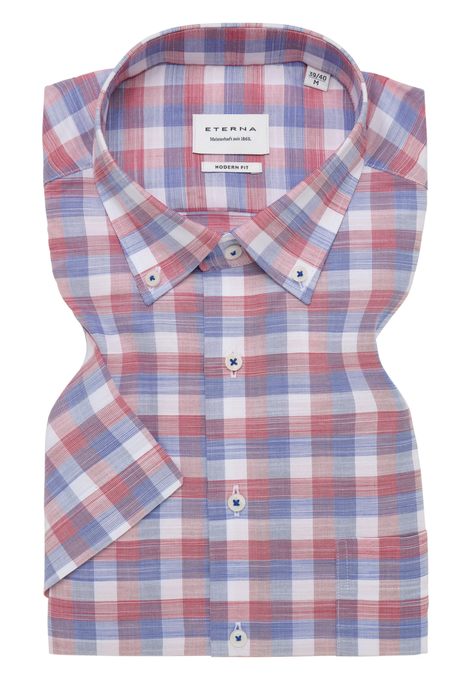 Ein extravagantes Karomuster bestimmt das Gesamtbild dieses modischen Kurzarmhemdes.