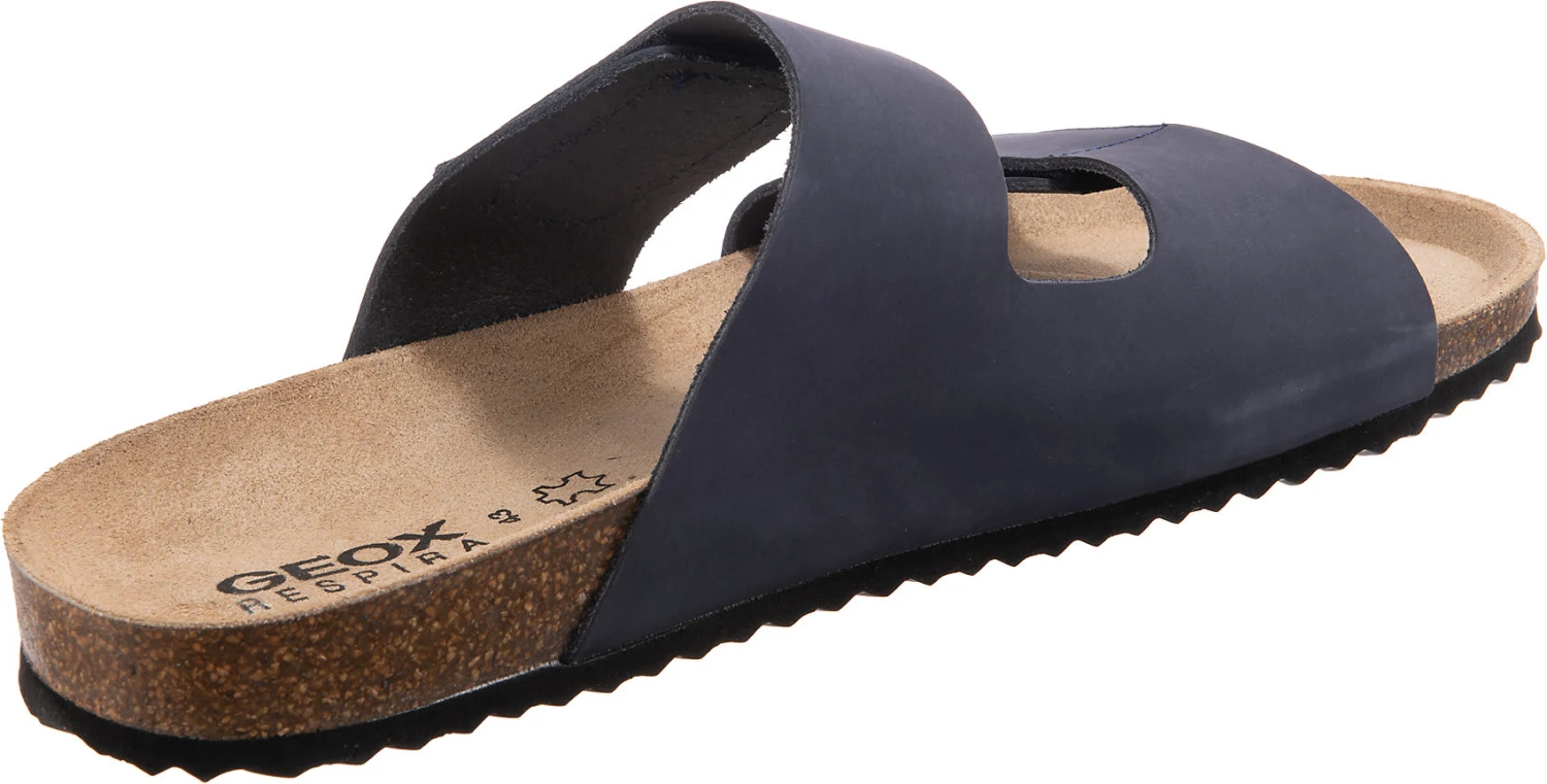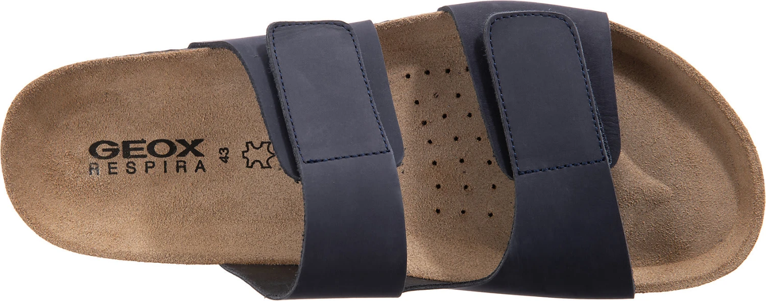Perfekt zu vielen Gelegenheiten: Diese ansprechenden Pantoletten der Marke GEOX. Das Obermaterial zeichnet sich durch das echte Leder aus. Durch die die Belüftungsperforationen tragen sich die Schuhe besonders angenehm. Für ein komfortables Tragegefühl besteht das Fußbett aus Leder. Für einen guten Sitz am Fuß sorgt der Klettverschluss.