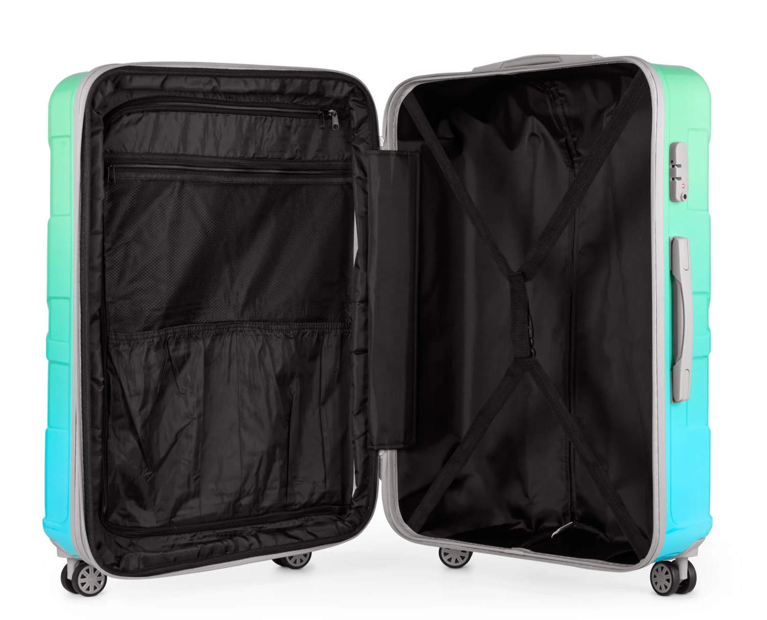 der großer Hartschelnkoffer von Suitline ist Ideal für Familienurlaube und ausgedehnte Reisen rund um den Globus. Im Verhältnis zu seinem riesigen Packvolumen (max. 110 Liter) hat er ein unschlagbar niedriges Eigengewicht von nur 4,5 Kilo.