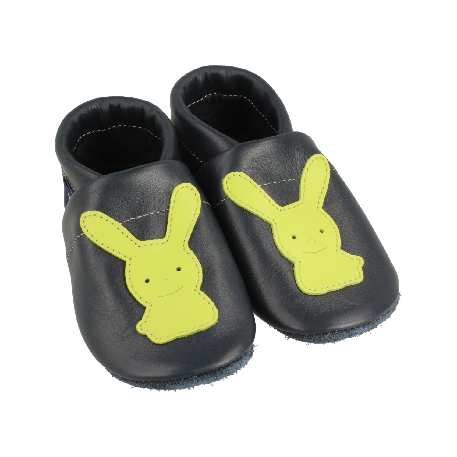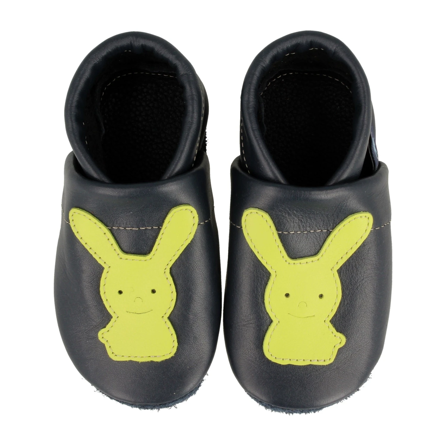 Hausschuhe / Lederpuschen Mit Hase In Blau / Apfelgrün