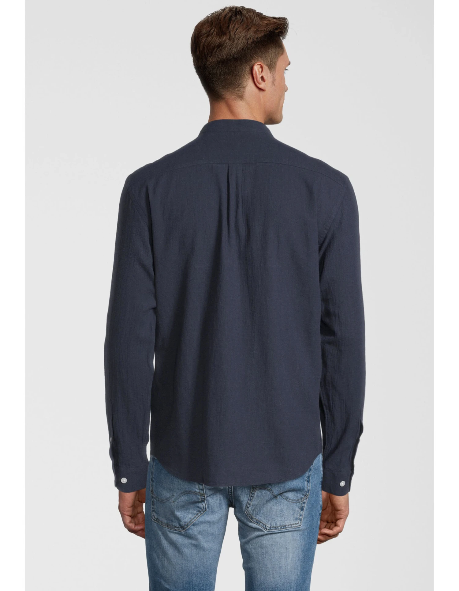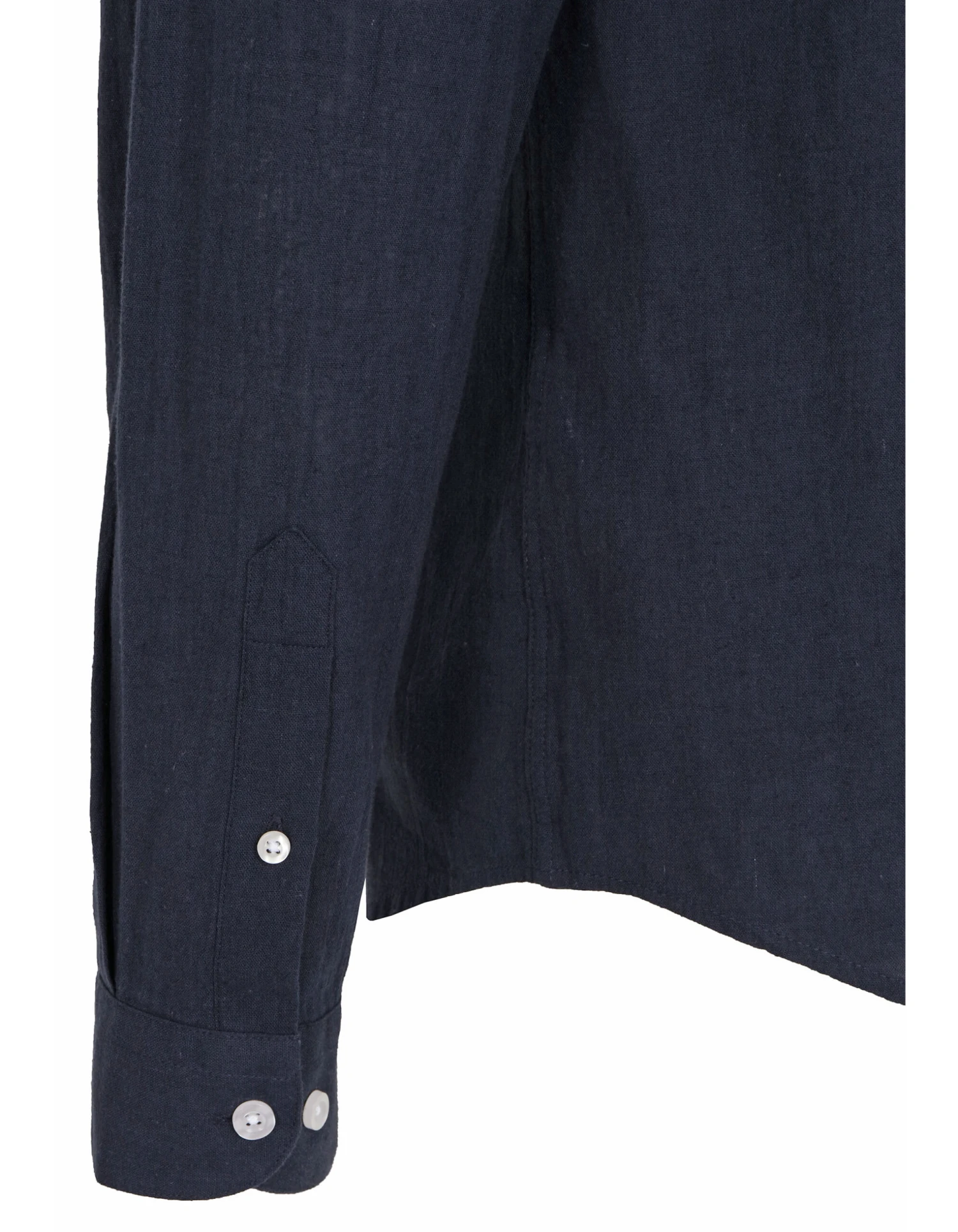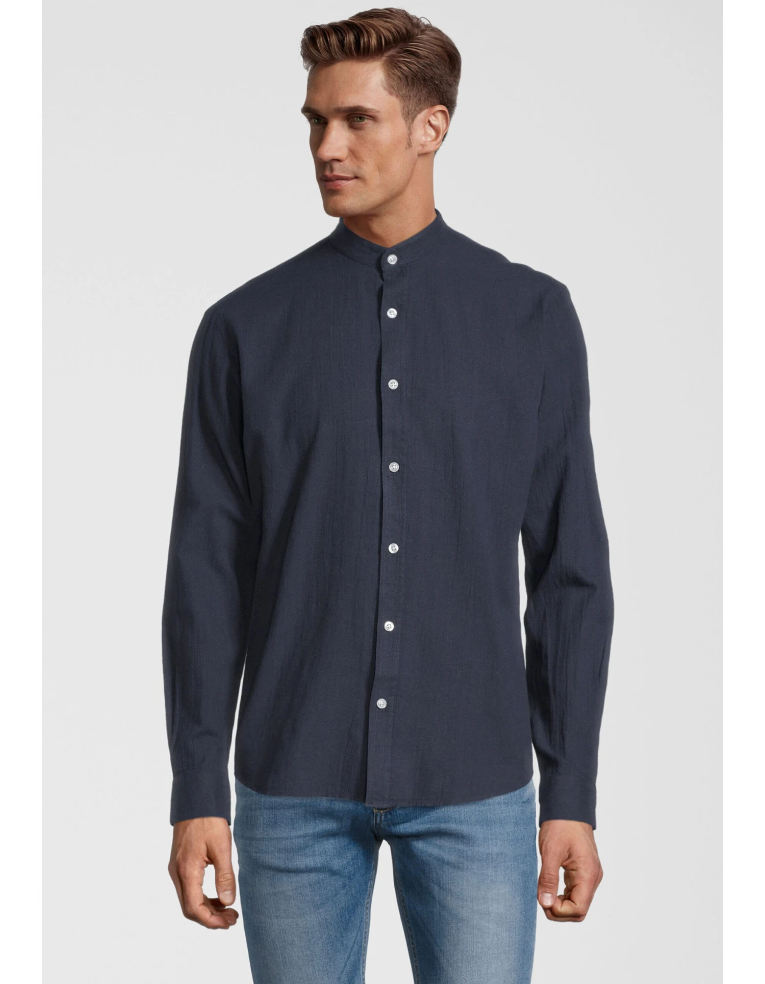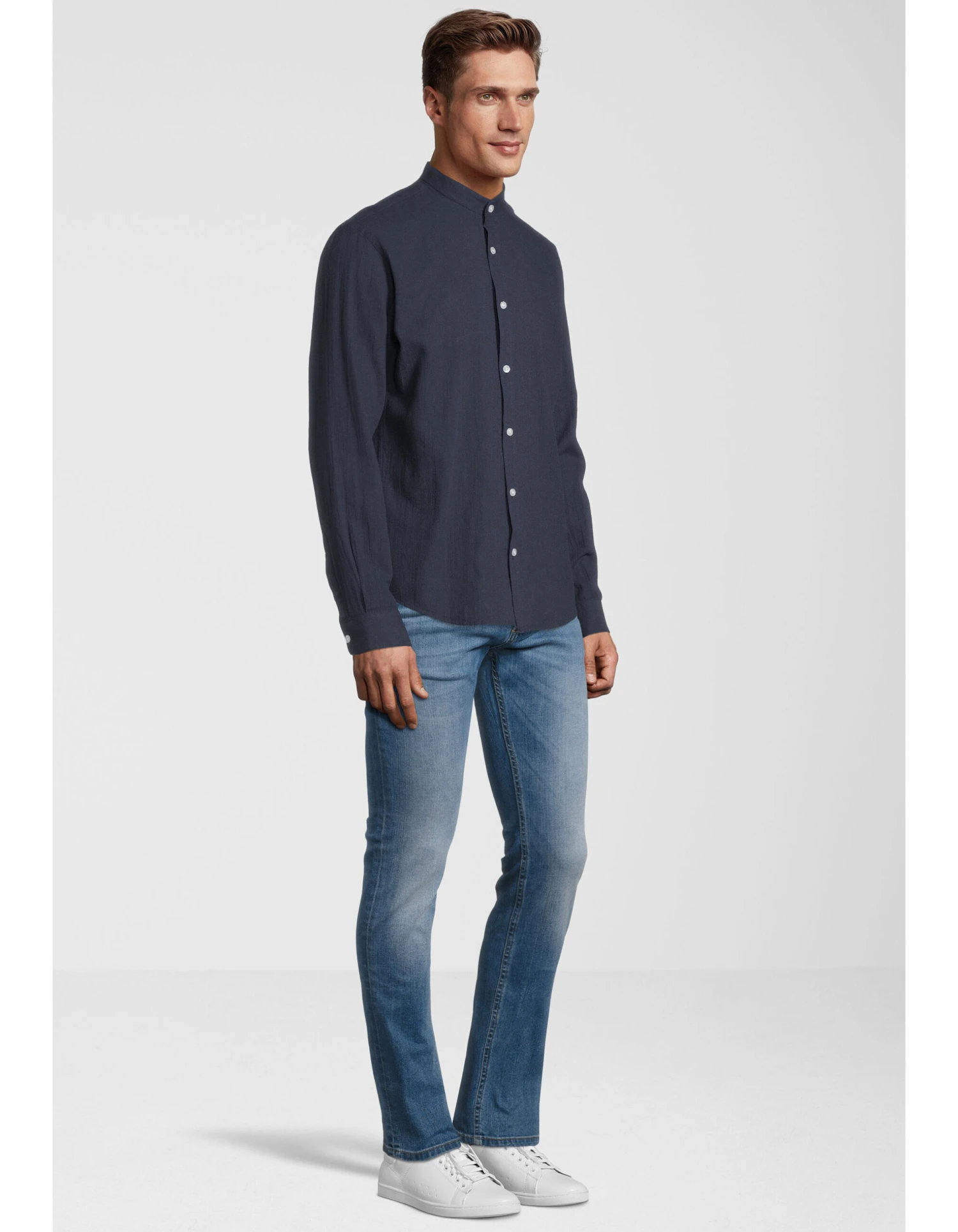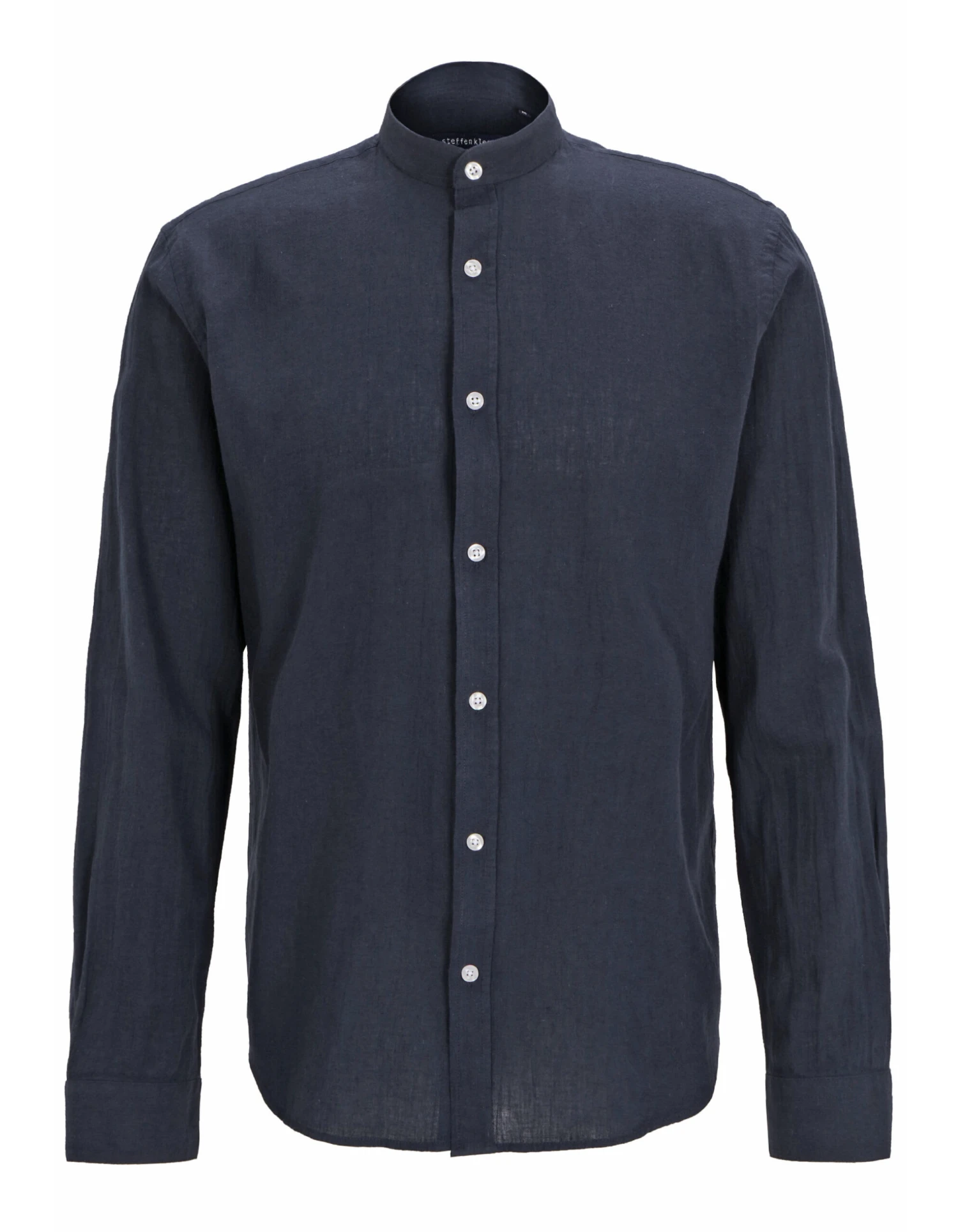 – Steffen Klein Stehkragen-Hemd in Leinen-Mix