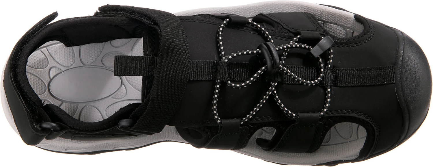 Die Outdoorsandalen aus dem Hause Freyling beweisen sich als widerstandsfähige Begleiter für die Fortbewegung im Freien. Dieses Modell kommt ohne jeglichen Verschluss aus, sodass ganz einfach hineingeschlüpft werden kann. Das Obermaterial besteht aus einem Materialmix aus Synthetik und Textil und ist robust sowie ansprechend gestaltet.
