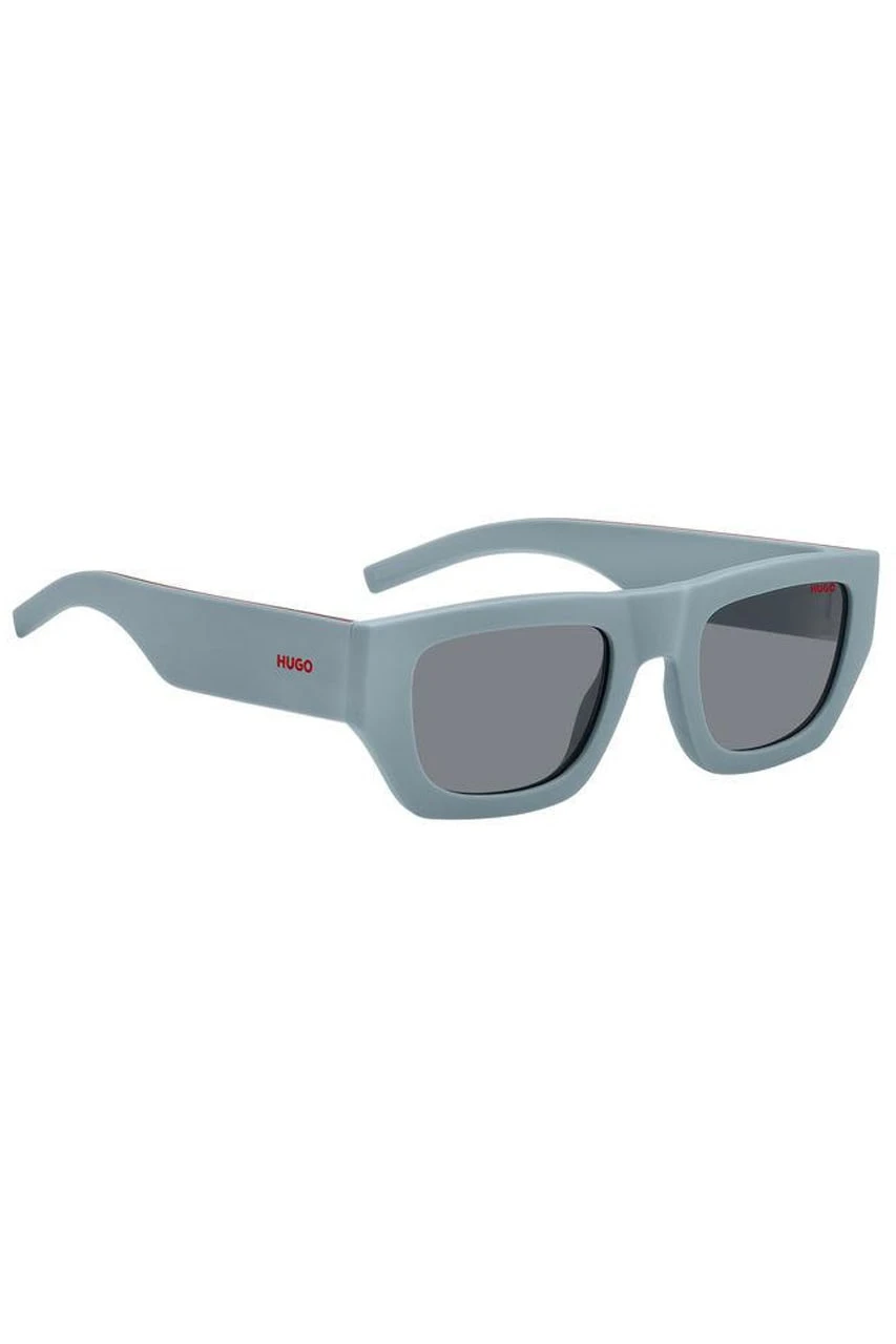 Herren-Sonnenbrille von HUGO Menswear Breites Gestell Eckige Form Mit Kunststoffrahmen Label-Wording auf dem Glas und Bügel Mit UV400-Filter Modell: HG 1252/S