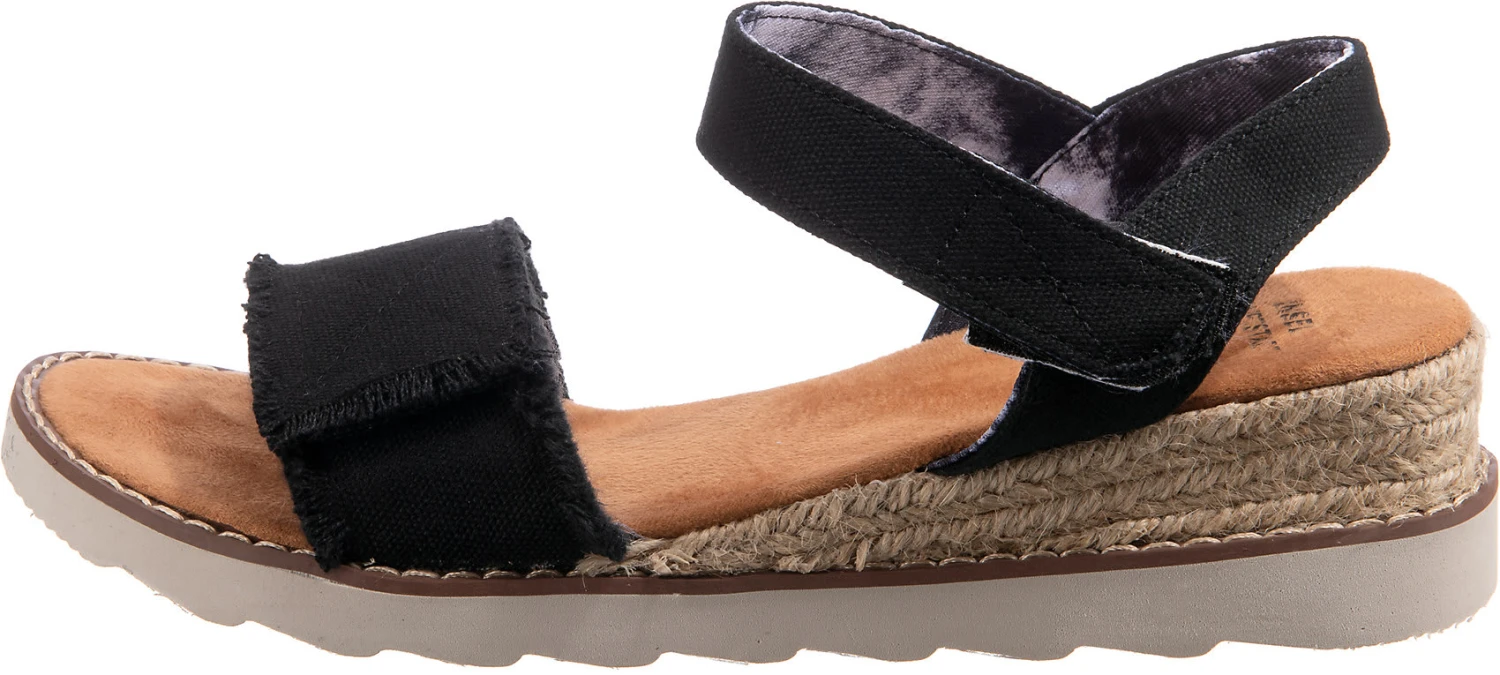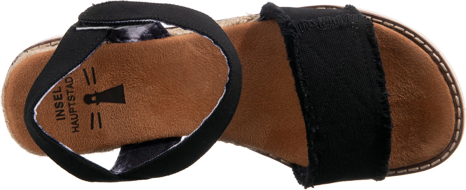 Die trendig gestalteten Keilsandaletten der Marke Inselhauptstadt ergänzen verschiedene Outfits. Der Klettverschluss gewährt eine bestmögliche Fußanpassung sowie einen festen Halt. Das Obermaterial aus Canvas verleiht dem Schuhpaar einen besonderen Look. Der Keilabsatz verbindet einen femininen Auftritt mit hohem Komfort. Das Textil-Futter aus Polyester passt sich ideal an die Füße an und ist zudem sehr anschmiegsam.