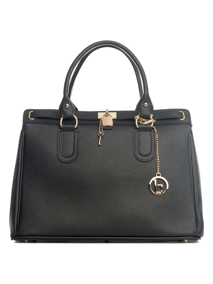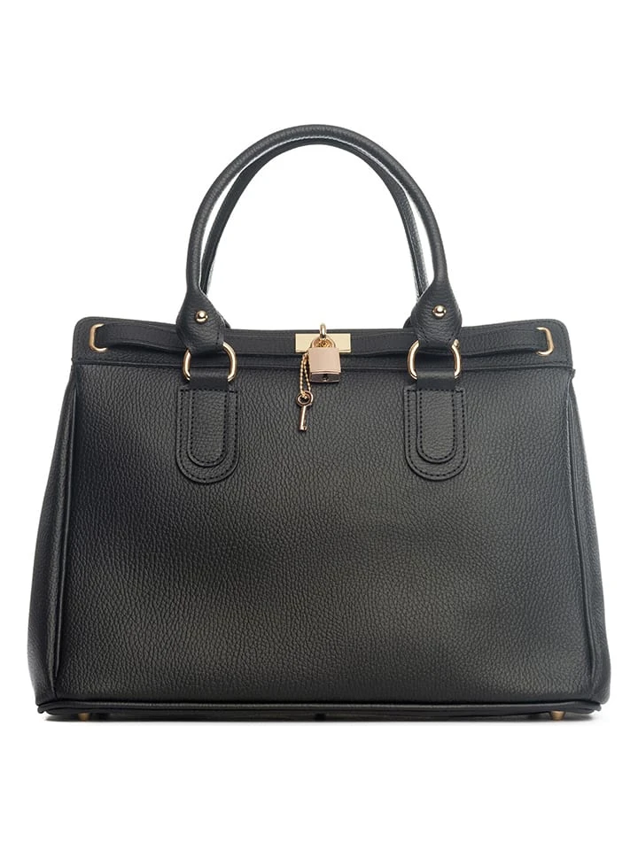 Leder-Henkeltasche In Schwarz – (B)36 X (H)28 X (T)18 Cm