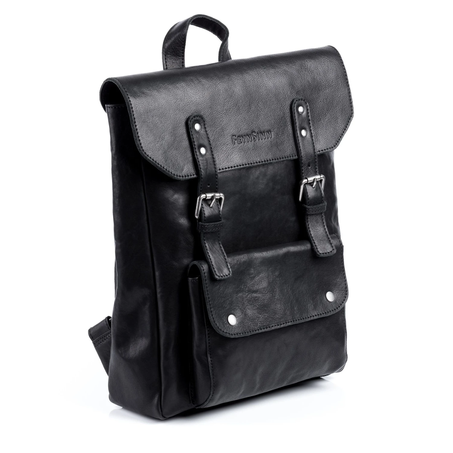 Original Rucksack flach PHOENIX aus echtem Premium Smooth in schwarz handgefertigt.