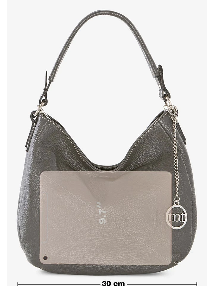 Leder-Schultertasche „Molise“ In Grau – (B)30 X (H)20 X (T)8 Cm