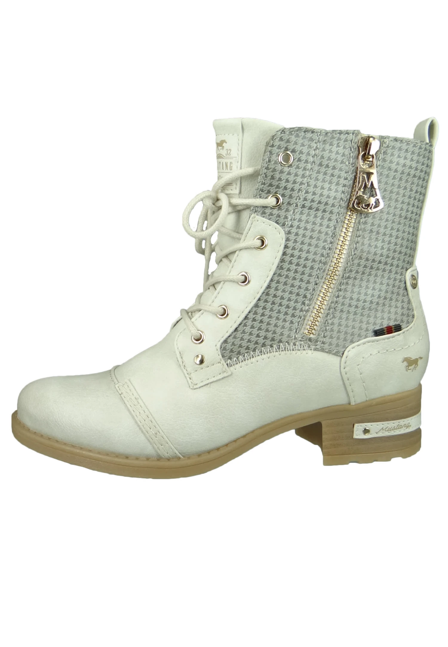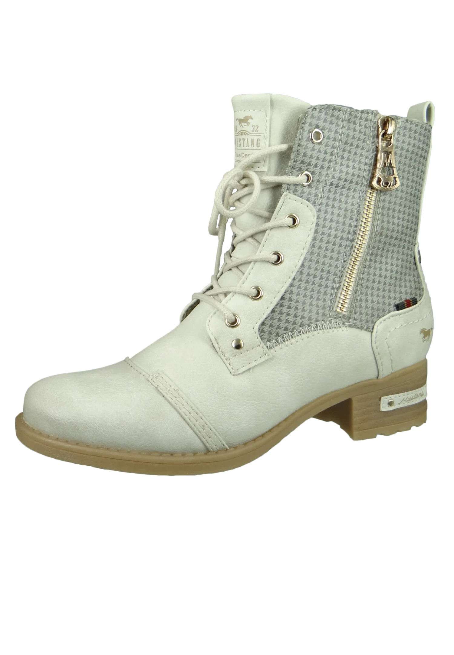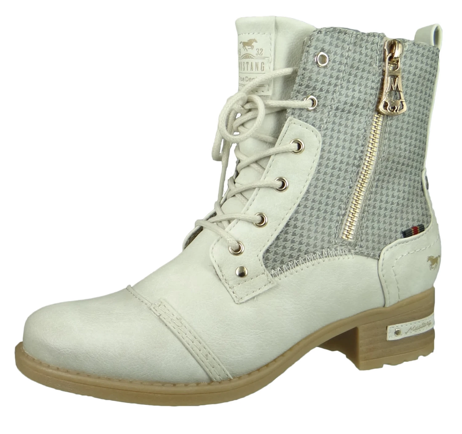 Die Stiefelette 1229510 aus dem Hause Mustang im sportlichen Style. Das Obermaterial aus pflegeleichtem Lederimitat mit Textil kombiniert sowie das Innenmaterial aus Textilfutter sorgen für perfekten und komfortablen Tragekomfort zu jeder Jahres und Tageszeit. Der Reißverschluss sorgt für den leichten Einstieg und setzt diese Stiefelette auch noch stilvoll in Szene. Die Stiefeletten haben einen Blockabsatz mit einer Höhe von 3 cm und eine Laufsohle aus Gummi. Die Mustang sind absolut toll mit allem kombinierbar.