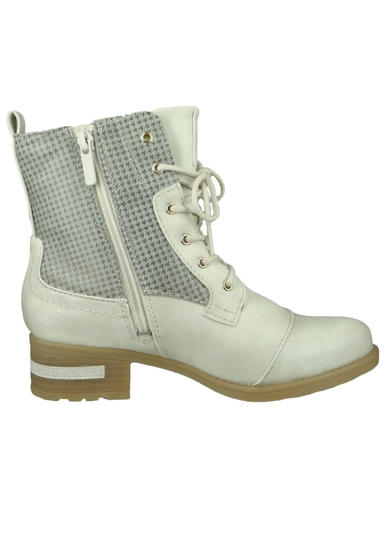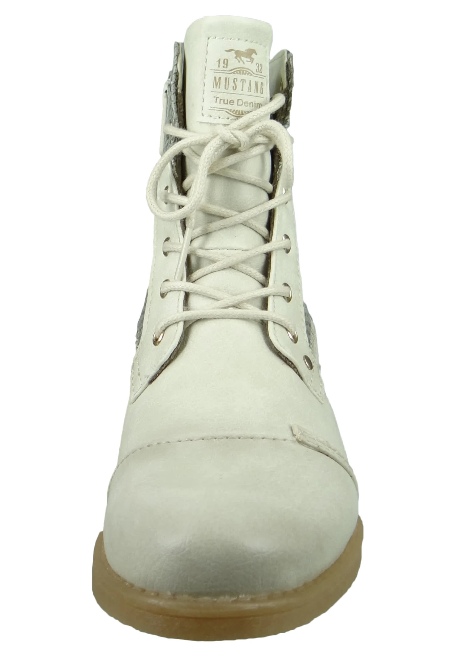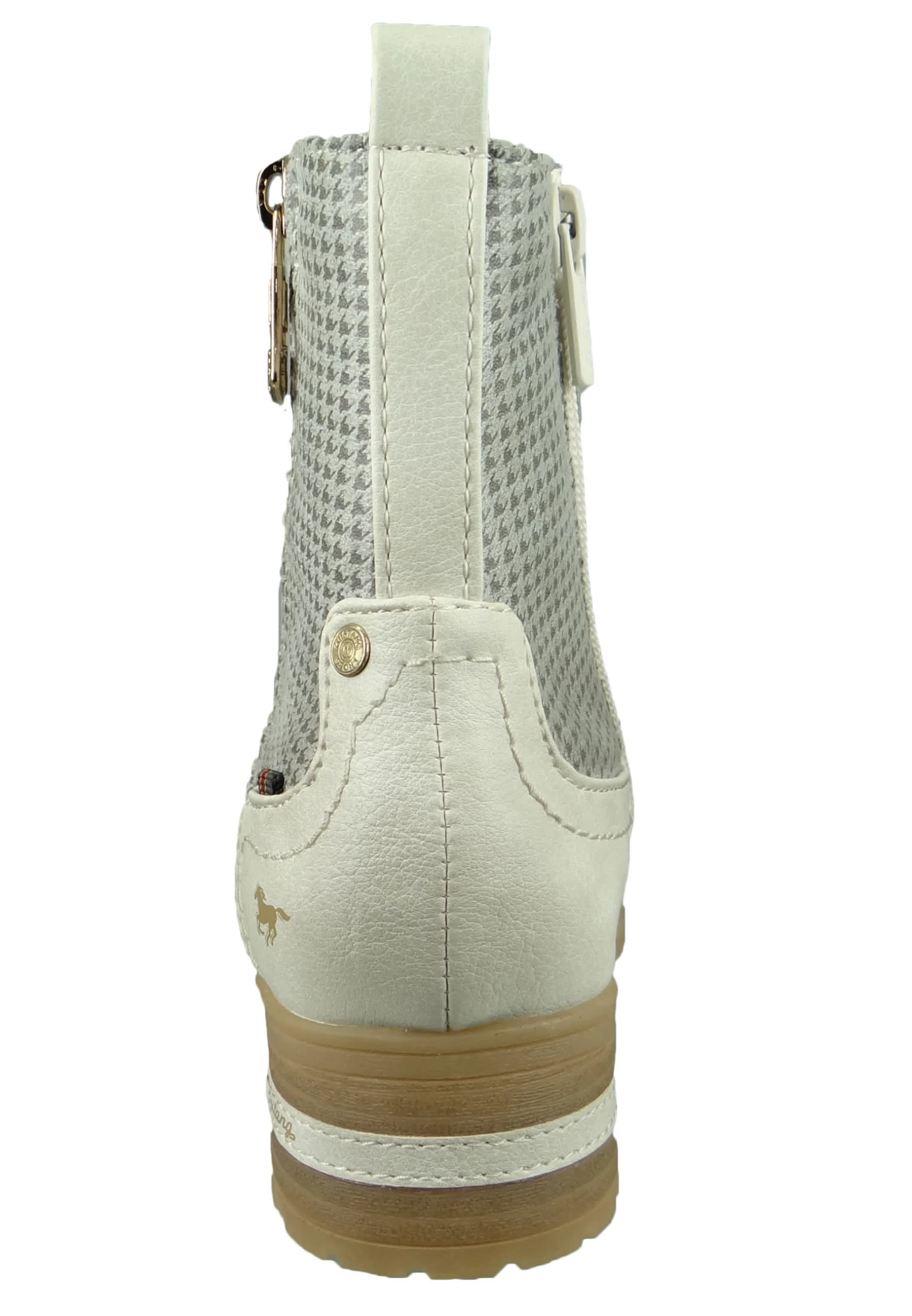 Die Stiefelette 1229510 aus dem Hause Mustang im sportlichen Style. Das Obermaterial aus pflegeleichtem Lederimitat mit Textil kombiniert sowie das Innenmaterial aus Textilfutter sorgen für perfekten und komfortablen Tragekomfort zu jeder Jahres und Tageszeit. Der Reißverschluss sorgt für den leichten Einstieg und setzt diese Stiefelette auch noch stilvoll in Szene. Die Stiefeletten haben einen Blockabsatz mit einer Höhe von 3 cm und eine Laufsohle aus Gummi. Die Mustang sind absolut toll mit allem kombinierbar.