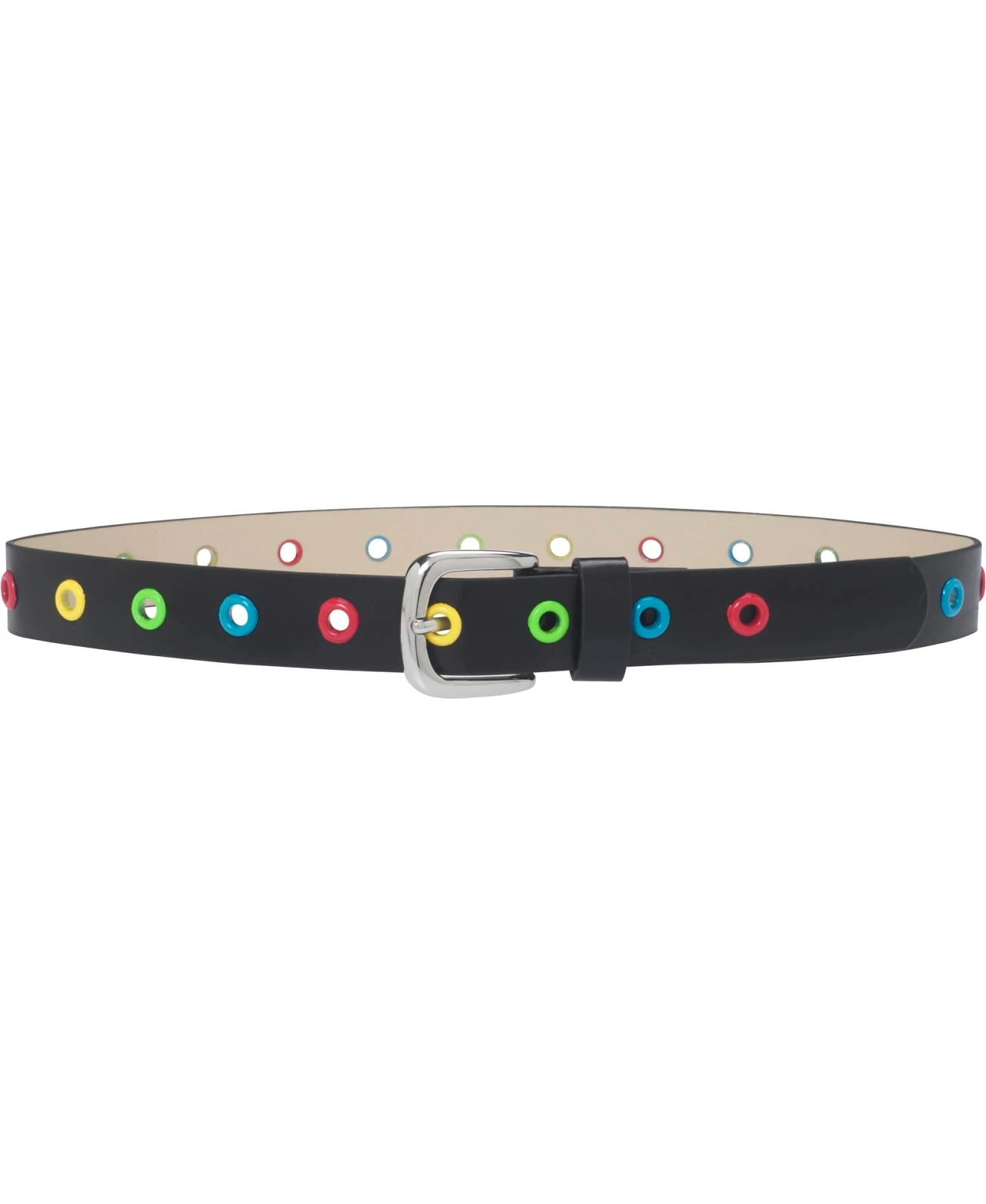 Stylischer Gürtel für Kinder mit bunten Kreisen als Gürtellöcher. Der Gürtel hat eine Metallschnalle mit Dornschließe. Der Gürtel hat eine Breite von ca. 25 mm. Erhältlich in den Größen 55, 60, 65, 70 und 75 cm.