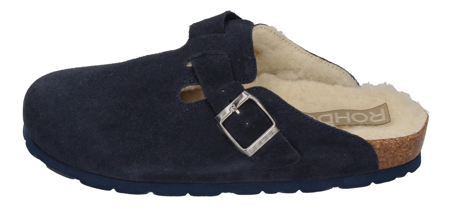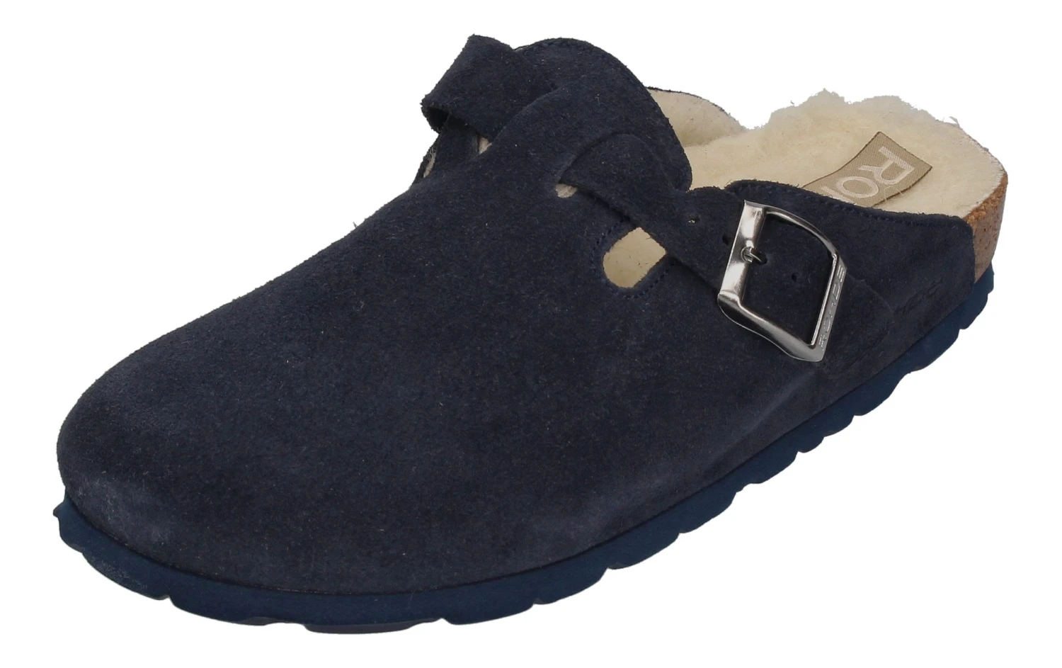 Die Hauschuhe Alba aus dunkelblauem Velourleder entstammen der Trendsetter Kollektion und sind wunderbar warm und bequem. Kuschlige Schurwolle, softes Velourleder und eine modische Sohle aus robustem Synthetik machen diesen Hausschuh aus. Durch die stabile Außensohle kann man mit den Pantoletten auch problemlos das Haus verlassen. Unschlagbar ist das excellente Preis-Leistungs-Verhältnis.