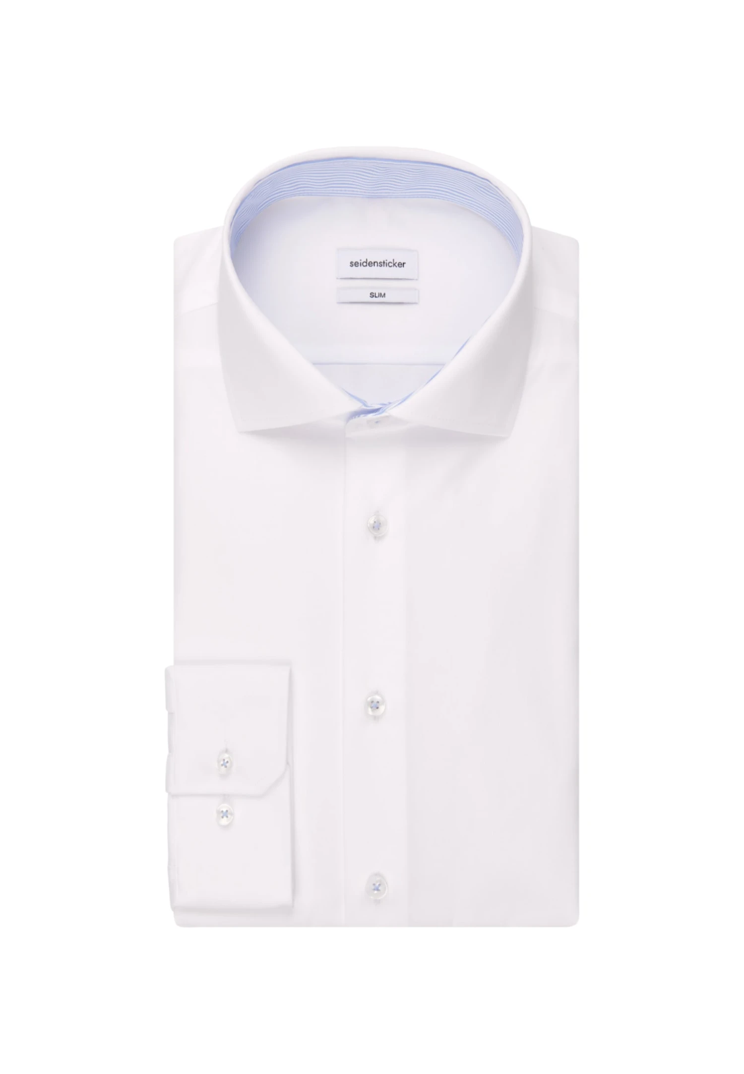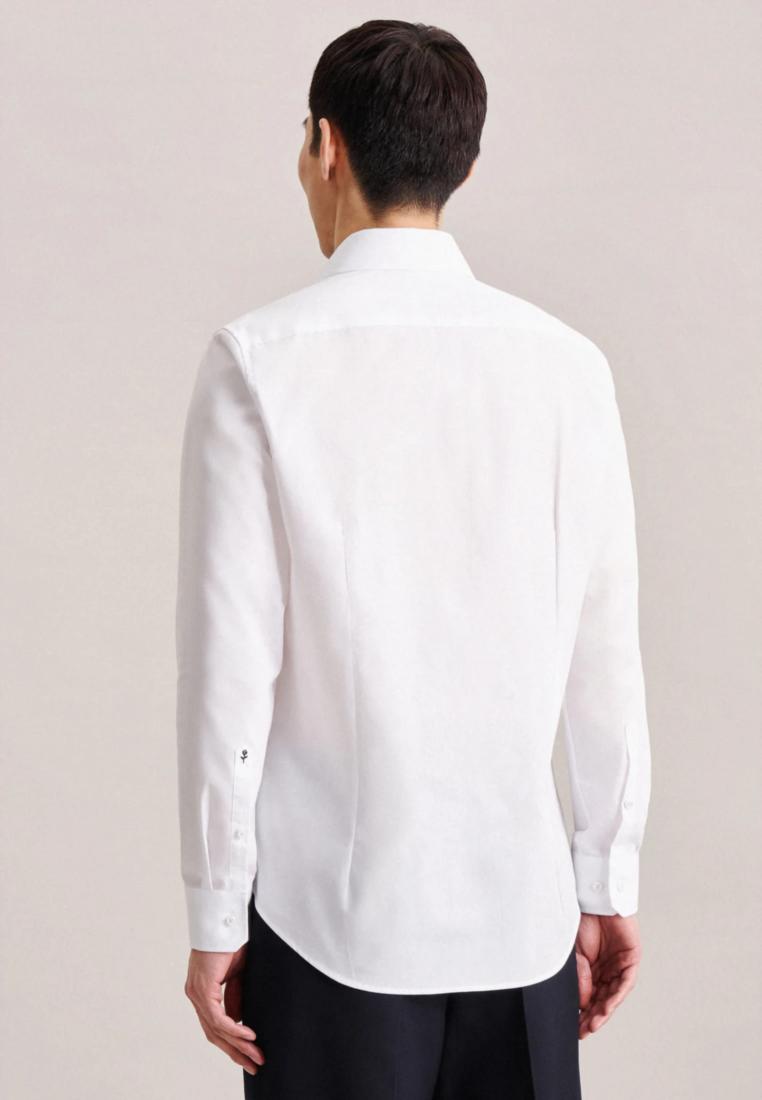 Das Herren-Hemd von Seidensticker kombiniert uniähnliches Design mit erstklassiger Qualität und sorgt für souveräne Momente im Office. Das bügelfreie Baumwoll-Fil-a-Fil inszeniert optimale Trageeigenschaften, die durch die Slim Passform perfekt ergänzt werden. Die körpernahe Schnittführung setzt die maskuline Linie gekonnt in Szene und sorgt zusammen mit den weitenverstellbaren Manschetten für eine individuelle Anpassung. Hingucker ist der Kontrastausputz im gespreizten Kent-Kragen.