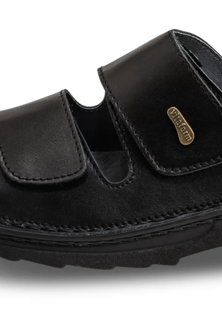Sonne raus, Zehen frei! Um das Maximum an grenzenloser Freiheit und Laufspaß zu genießen, führt diesen Sommer kein Weg an der vitaform Pantolette aus ultragescheidigem tiefschwarzen Nappaleder vorbei. Das Luxus-Cabrio unter den vitaform-Flitzern überzeugt durch ein Innenleben vom Feinsten: Das atmungsaktive Lederfutter sorgt für ein optimales Tragegefühl, selbst an superheißen Tagen und verschlägt selbst wahren Kennern die Sprache. Das stimulierende und extrem komfortable Reflexzonenluftpolsterfußbett dieser Traumkarosse fällt dann unter die Kategorie unverzichtbare Sonderausstattung.