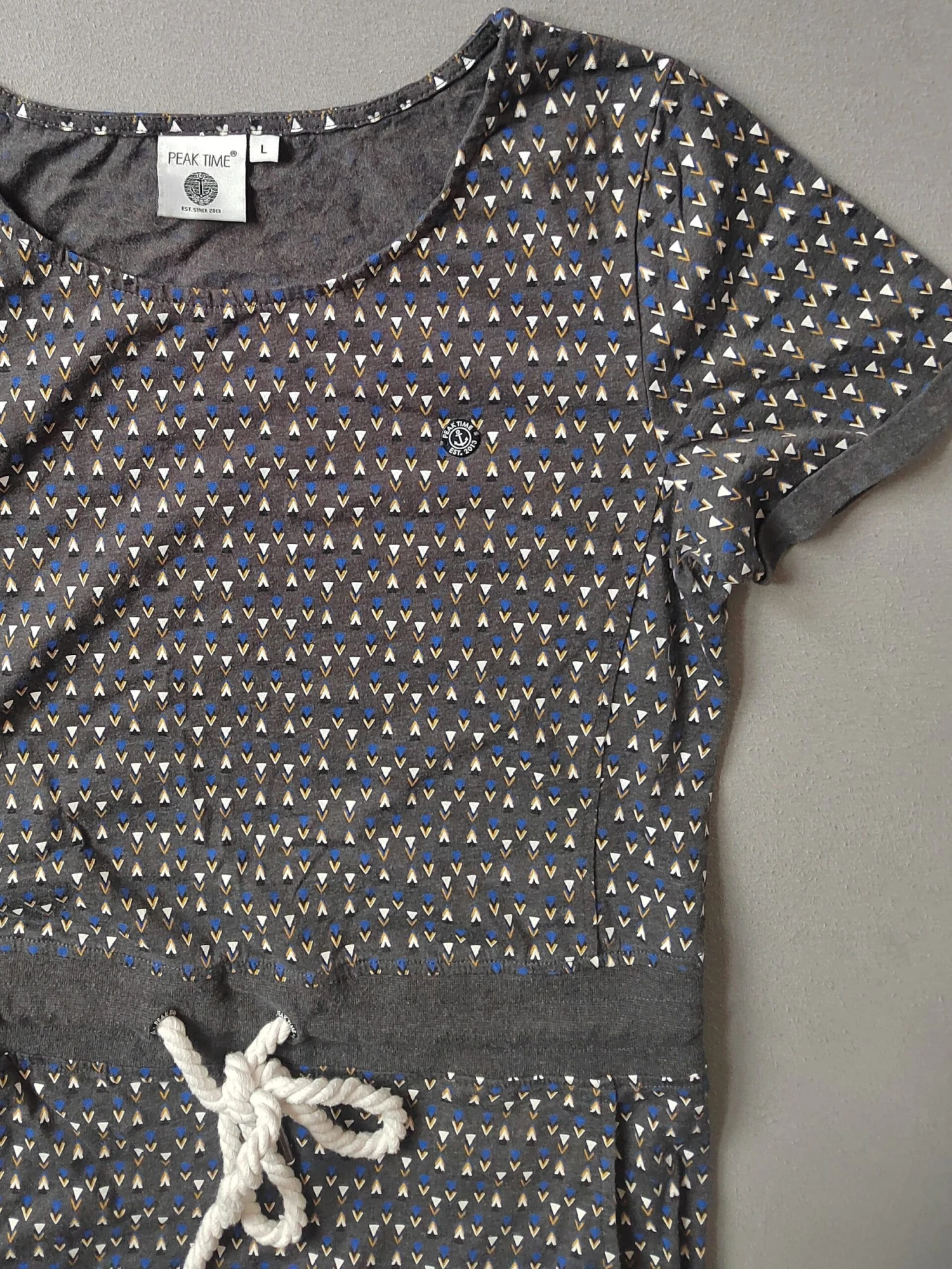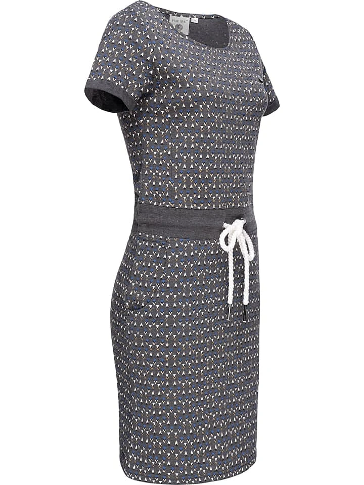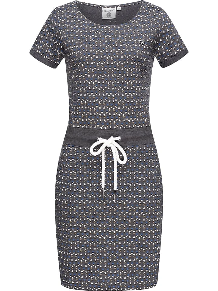LOOK: Stylisches Kurzarm Jerseykleid von Peak Time, je nach Variante mit verspieltem Printmuster oder uni-farben, mit Rundhalsausschnitt und modischer dicker Tunnelzug-Kordel an der Taille