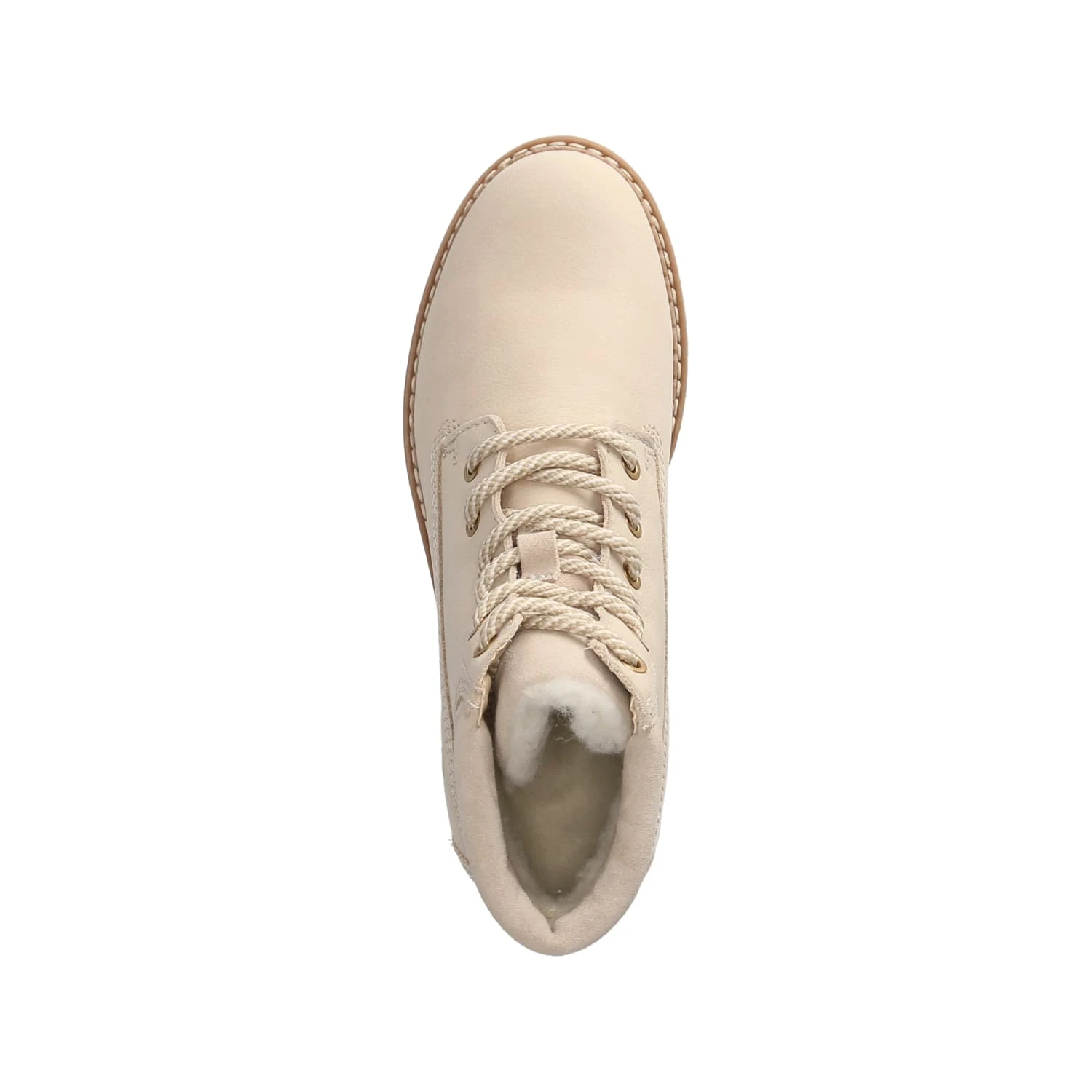 Tamaris Damen Schnürstiefeletten /Stiefeletten /Winterstiefeletten Beige Rauleder – modische Ziernähte – zum Teil aus recycelten Materialen – wasserfest, atmungsaktiv und isolierend (DUOtex) – gepolsterter Einstieg – Schnürung – warmes Textilfutter – verstärkter Fersenbereich – gepolsterte Wechseldecksohle – flexible, rutschhemmende Profilsohle